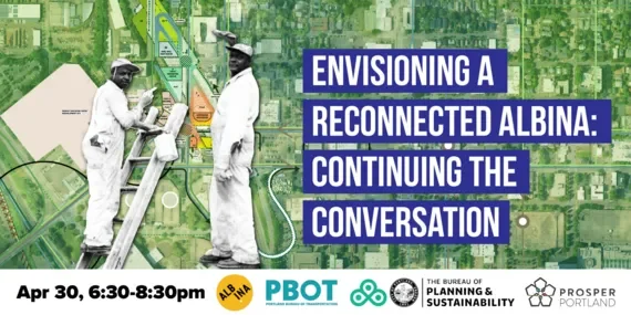 Portlanders are invited to attend Envisioning a Reconnected Albina: Continuing the Conversation, a workshop focused on the future of Lower Albina as part of the Reconnecting Albina Planning Project.